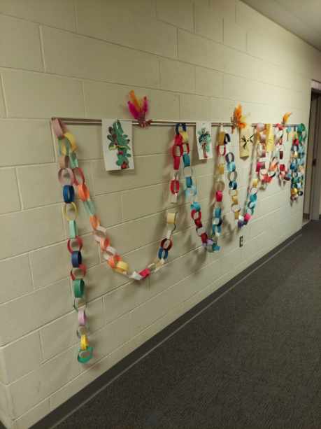 Our artwork is displayed by the sanctuary for everyone to see. We build on our prayer chain every week as we continue to add the links. If you are interested in attending our Sunday School Class we would love to have you!